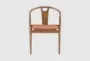 The Ballard Tan Faux Leather Curved Back Dining Chair is a stylish addition to any dining space, blending comfort and elegance with its mid-century modern design. The leatherette over foam seat ensures a plush seating experience, while the stained solid ash wood frame provides durability and a classic bentwood aesthetic.