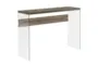 The Moderna Modern Brown 44" Console Table is a stylish and functional addition to any home. Its dark taupe wood finish and clear tempered glass sides create a sleek, contemporary look that complements a variety of decor styles. The spacious table top provides ample surface area for displaying plants, books, or other decorative items.