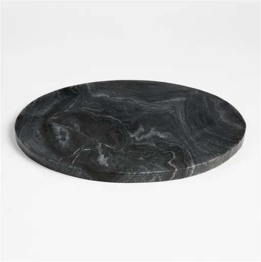 Gorgeous black marble, polished to showcase its natural color and unique veining fashions a stunning serving board for cheeses and charcuterie. Upright, gold-finished handles lend contemporary style while providing an easy way to lift the board. Lovely to look at, the marble board serves a practical purpose. Naturally cool to the touch, marble transfers heat away from cheeses and meats, preventing foodstuffs from becoming too warm. We just love the way creamy white cheeses, fresh fruit and crispy crackers look so appetizing in contrast to the dark, sleek surface.