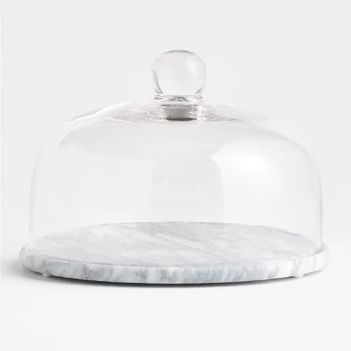 Bring out the best in fine cheese, Gallic-style. This classic sets a handmade glass hemisphere with generous knob handle atop a circle of white, uniquely veined solid marble. Not only great for displaying and serving cheese, the dome allows the cheese to breath, creating its own microclimate with just the right humidity for storing and ripening favorite varieties to perfection. Because marble is a natural product, veining and coloring variations will occur; see additional images for examples.