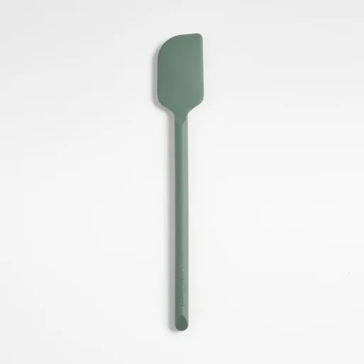 Scrape every delicious bit of brownie batter, pasta sauce and rice pudding with our signature silicone spatula in a fresh grey-green hue inspired by thyme. Constructed with a nylon core for strength, the utensil ably stirs and spreads the thickest doughs, batters and nut butters—or folds delicate meringues. Its flexible, tapered edges scrape the bowl, blender or pan perfectly clean. The soft-touch silicone won't damage non-stick cookware, resists scratches and tolerates heat up to 500°F. We love the way the refined beveled edge finishes the elongated handle with a dynamic detail. Combine the dishwasher-safe spatula with the other exquisitely proportioned utensils in our exclusive Crate & Barrel collection for a well-outfitted workspace that's up to any cooking challenge.