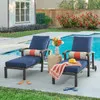 Get lost in the oversized comfort and structurally sound furniture of our exclusive Fairmont Collection. Feel the cool touch of the handmade aluminum frame, featuring a multi-step powder-coated and oven-baked clear coat finish. Each piece in this 3 piece chaise lounge set is constructed by laser welding to create fully welded and braced frames with zero weld marks. The chaise lounges feature PVC sling seat suspenion and include oversized deluxe Sunbrella® acrylic cushions. The textilene material's flexibility and sturdiness make it a comfortable material for seating. The 18 in. round end table features a travertine stone design comprised of concrete with a rib finish and provides extra surface area to keep personal items close by.