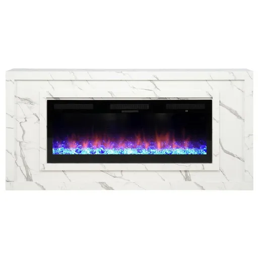 Add some warmth and a sweet, at-home vibe with the Purestone Blaze Electric Fireplace w/Remote Control. Made of wood and faux marble, this lovely fireplace features a realistic flame effect that can be activated with or without heat. Its thermostat control gives you the ability to heat a room up to 400 square feet. Plus, its LED lighting adds an extra level of modern elegance.