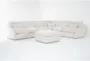 Introducing the Kennedy Cream 159" 6 Piece L-Shaped Modular Sectional with Ottoman, perfect for your living room. This oversized sectional offers a soft and inviting place to relax, with its modern design and versatile layout. The linen color and deep-seated comfort make it an ideal addition to any neutral-themed space.