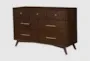 The Springbrook Walnut 7-Drawer Dresser is a stunning addition to any modern bedroom. Crafted from high-quality mahogany solids and mahogany veneer, this dresser combines durability with a sleek, sophisticated design. Its rich walnut finish and mid-century modern style make it a versatile piece that complements a variety of decor themes.