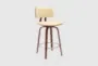 Morroco 26" Swivel Walnut Wood Counter Height Stool In Cream Faux Leather With Chrome | Performance Fabric | Armless