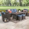 Venice Silver Oak Outdoor Wicker with Cushions 6 Piece Swivel Sofa Group 59 x 32 in Woven Top Lounge Table