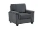 Frenna Dark Grey Chair offers comfort-forward seating with crisp tailoring and a compact profile that suits a variety of living room layouts. Upholstered in 100% polyester fabric, it pairs a plush seat cushion and foam-wrapped back with a plywood frame and tapered wood legs for reliable support built to last. The straightforward silhouette makes this chair an easy choice for a reading nook or as a grounded accent piece in everyday spaces.