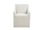 Elevate your dining experience with the Cream Skirted Dining Arm Chair With Casters. This coastal-inspired chair combines traditional elegance with modern functionality, featuring a solid wood frame and plush polyester upholstery. The soft cream color and skirted design add a timeless touch to any dining room, while the caster wheels ensure easy mobility.