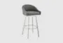 Experience modern style and comfort with the John 30" Swivel Barstool. This sleek barstool features a brushed stainless steel metal frame and grey faux leather upholstery. Perfect for your dining room or kitchen, it provides both functionality and a contemporary aesthetic.