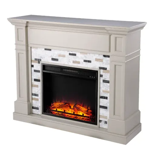 Warm up your space with contemporary design when you bring home this freestanding electric fireplace. Classic woodwork creates a cozy fireplace look, while the sleek marble surround adds a clean, modern feel to your living room or dining area. Realistic faux fire logs and flickering flames bring ambiance to your space, working with or without heat for year-round enjoyment. Curl up and unwind in cozy comfort when you add this marble fireplace to your contemporary décor. Available for Online Purchase Only. Ships Directly from the Manufacturer. RC Willey Delivery is Not Available. Assembly required.