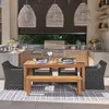 Laguna Smoke Outdoor Wicker and Solid Teak with Cushions 6 Piece Bench Dining Set 71 x 36 in Table | Furnzy.com - Shop local furniture stores in one place