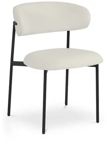 Take dining to a sophisticated new level with these Lupita off-white vegan leather dining chairs. Boasting a brushed black finish on the frame and legs for an elegant, refined feel, this pack of two vegan leather dining chairs features curved backs for total comfort all the way through the desert course. Padded cushions on the back and seat add to dining comfort. Pair these chairs with your favorite table for an upscale look in an instant. Available for Online Purchase Only. Ships Directly from the Manufacturer. RC Willey Delivery is Not Available. Assembly required.