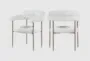 Enhance your dining experience with the Laki White Boucle Upholstered Dining Arm Chair Set. These chairs feature a modern design with a rich cream boucle fabric that adds a touch of elegance to any dining space. The brushed brass finish on the iron metal frame provides a contemporary and stylish look.
