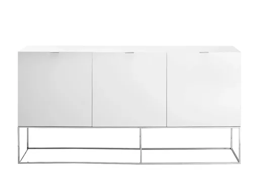 Description The VIZION High Gloss White Lacquer Stainless Steel Buffet. Features clean and modern lines adding a sophisticated look and modern edge to any room. Materials MDF Stainless Steel , quality that is made to last. Dimensions in Price Can Vary Upon Style Size Call for Details Placing Order