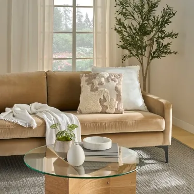 This beige textured throw pillow from Mina Victory Home Accents is a must-have for any space that needs a dose of style and comfort. The abstract design, made from a combination of looped and tufted yarns, adds a pop of dimension thatâ„¢s as fun to look at as it is to feel. This 18x18 handmade pillow is crafted from cotton reinforced with polyester for easy spot cleaning. Pair with our matching pouf for a coordinated look in a snap.