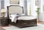 The Henrietta Queen Wood & Upholstered Platform Storage Bed combines classic and traditional styles to create a stunning centerpiece for your bedroom. Crafted from solid rubberwood, this bed ensures long-lasting durability and strength. The rich walnut finish, achieved through a meticulous multi-step process, enhances the natural beauty of the wood, making it a timeless addition to any home.