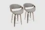 Enhance your dining or kitchen area with the Vini Curve Light Grey Fabric + Walnut Swivel 24" Counter Height Stool Set Of 2. These modern stools feature a stylish combination of light grey fabric and walnut wood, complemented by chrome accents. The curved design and swivel functionality provide both comfort and convenience.