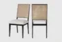 Enhance your dining experience with the Betten Cream Linen Fabric Textured Dining Chair Set. This set of 2 armless chairs features a modern design with a woven back, perfect for any dining room or kitchen. The cream linen textured fabric and natural cane backrest add a soft, inviting touch.