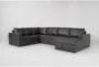 The Sebastian Slate Grey Faux Leather 140" 3 Piece Convertible Sectional with Right Arm Facing Storage Chaise is the perfect addition to any modern living room. Its sleek design and functional features make it a versatile and stylish choice for your home. Made with 100% polyester faux leather, this sectional is durable and easy to maintain.