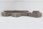 amallo mocha brown natural fabric 141" 5 piece modular l-shaped sectional with ottoman | symmetrical | tufted