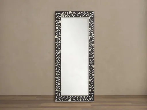 Handcrafted in collaboration with artisans in the remote city of Udaipur, India, our Divya Floor Mirror is inspired by traditional designs. Mosaic floral motifs, reminiscent of jasmine blossoms, are created from individually placed bone inlays.