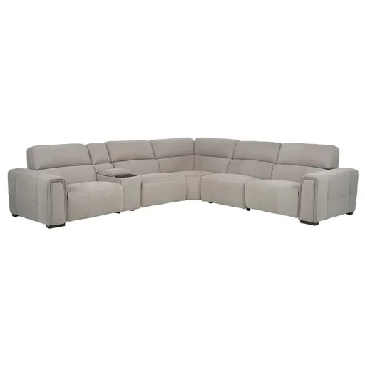 Stylish, elegant and sophisticated, the Freya Power Reclining Sectional with 6PCS/3PWR features power motion, telescopic headrests, sliding armrests with hidden cupholders, and a storage console. Its tufted sides, transitional style and attractive gray color add to its appeal, making this the perfect couch to give your living room a bit of sophistication and character.