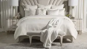 Glowing with glamour, the Hailey 9-pc. Queen Comforter Set showcases a modern style perfect for elegant homes. The main fabric features a raised texture with embroidered accents on the accessories. Its solid ivory hue blends effortlessly with a range of color palettes and aesthetics, while the white fur pillow delivers a dash of uniqueness. Decorative pillows have removable covers and feather fill. Included is 1 comforter, 2 standard shams, 2 euro shams and 4 decorative pillows that are feather filled.