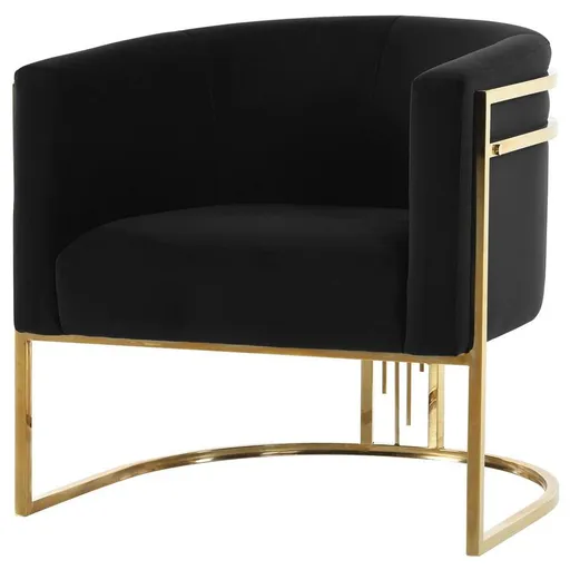 Don't just sit -- sit like royalty in the Gatsby Black Accent Chair. This art-deco inspired velvet chair with its gold steel base and deep, wide seating will make you a hit with all your guests.