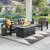The Chelsea Collection contains concealed cushion seating composed of black and greys for a versatile look that blends with every style. Each piece in this 3 piece sofa group is handwoven with synthetic flat strands of resin wicker, treated with UV inhibitors, over a powder-coated aluminum frame. Sink into the triple-layer construction and quick-drying, foam-padded cushions of the sofa and club chair and relax in comfort. With cushions built-in, you don't have to worry about securing cushions or having to readjust them.
