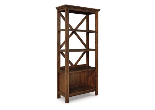 Leaning toward a casually cool look with a touch of rustic industrial flair? The Baldridge bookcase takes a fresh stance on style. Clean-lined profile with crossbuck back is complete with saw marks for distinctive character.