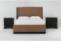 Enhance your bedroom with the Estate Black King Upholstered Shelter 3 Piece Bedroom Set by Nate Berkus + Jeremiah Brent. This traditional set includes an Eastern King wingback bed, a 3-drawer nightstand, and a 2-door nightstand, all designed to bring a touch of sophistication to your space. The set is crafted from solid pine and fabric, offering both durability and comfort.