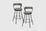 Upgrade your dining or kitchen area with the Axel Grey Metal Swivel 30.5" Barstool Set of 2. These industrial-style barstools feature a sleek grey finish and are designed for durability and comfort with metal and faux leather materials. The swivel function adds convenience and flexibility to your seating arrangement.