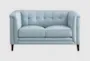 Experience the comfort and style of the Drummond Blue Top Grain Leather Loveseat. Its spa blue hue brings a refreshing touch to any living space, while the top grain leather ensures durability and a soft, luxurious feel. Perfect for casual settings, this loveseat combines practicality with timeless design.