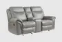 Experience ultimate comfort and relaxation with the Clarissa Grey Glider Reclining Console Loveseat. Designed in a casual style, this loveseat features breathable faux leather upholstery in a sophisticated gray color. The solid wood and plywood frame with metal reinforced seat ensures durability, while the tab pull reclining motion and gentle gliding motion provide a soothing experience. The center storage console with 2 cup holders adds convenience, making it perfect for any living space.