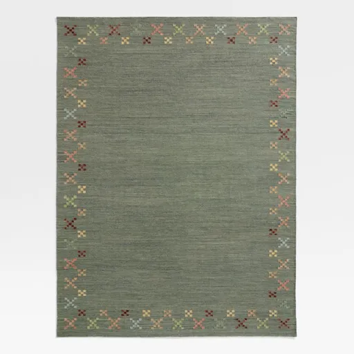 Our Broderie kilim rug by designer Louise Roe combines the versatility of a solid floorcovering with the personality of a patterned piece. In a rich, warm palette, the rug is finished with a cross-stitch-inspired border for a hit of playfully traditional charm. The wool and Tencel blend is both durable and delightful underfoot.