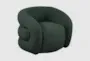 Introducing the Roxbury Green Boucle Fabric Swivel Accent Chair, a perfect addition to your living room. This modern chair features a curved design and comfortable arms, making it both stylish and functional. The rich green color and boucle fabric create a cozy and inviting seat for any space.