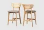 Introducing the Dannell Mid-Century Modern Grey Upholstered & Natural Oak Wood 24" Counter Height Stool Set Of 2, perfect for adding a touch of retro charm to your dining room or kitchen. These stools offer a comfortable and stylish seating option with their sleek, armless design and woven synthetic rattan backrest. The combination of grey upholstery and natural oak wood legs creates a harmonious look that complements any contemporary space.