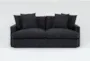The Grand Down III Black Fabric 83" Sofa is a stunning addition to any living room. Its modern design and dark hue create a stylish yet understated look that complements a variety of interior styles. The loose reversible back cushions add versatility and comfort, making it an ideal choice for relaxing moments at home.