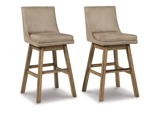 The Tallenger barstool invites you to take contemporary modern style for a spin. Comfortably cushioned seat, self-returning swivel and contoured back make it beautifully in tune with your needs. Luxurious faux leather upholstery is a sensational touch.