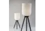 Enhance your living space with the 23" Black Rubberwood Wood Tripod Table Lamp. This modern lamp features a frosted ribbed glass shade that diffuses light beautifully, creating a warm and inviting atmosphere. The dimmable function allows you to adjust the brightness to suit any mood or occasion.