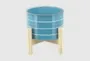 Enhance your home decor with this 6 Inch Skyblue Striped Ceramic Planter with Wood Stand. This modern planter features a vibrant blue color that brings a touch of summer to any space. The wooden stand adds a stylish contrast and elevates your plants beautifully.