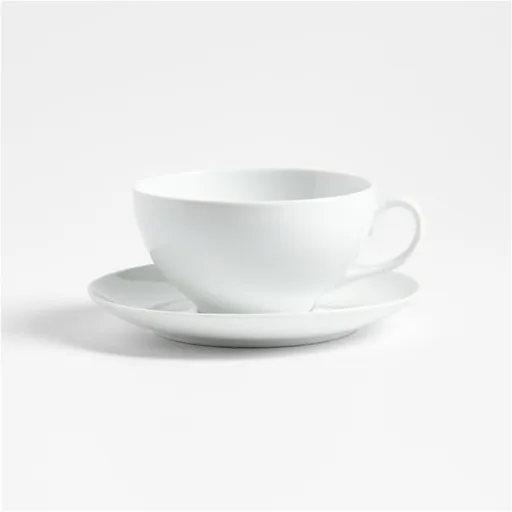 Enjoy your frothy "caffè" favorite in our classic porcelain cup with simple coffee-bar styling and matching saucer. The wide cup presents cappuccinos, hot chocolate and other foam-topped beverages beautifully, and the graceful handle protects hands from hot drinks. Glazed in translucent white, our exclusive Aspen saucer and 12-ounce cup are microwave- and dishwasher-safe for quick warm ups and easy cleanup.