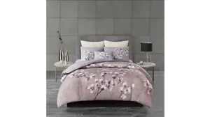 Evoke peace and relaxation in your bedroom with the N Natori Sakura Blossom 3 Piece Cotton Comforter Set. Beautiful printed cherry blossoms, in lilac hues, grace the top of the oversized comforter for a gorgeous floral and globally inspired look. The hidden bartacks on the comforter create a duvet-like finish, while sakura embroidered matching shams coordinate beautifully to complete the bedding set. Made from soft cotton sateen, this comforter set is machine washable for easy care. This bedding set is also OEKO-TEX certified, meaning it does not contain any harmful substances or chemicals, ensuring quality comfort and wellness.