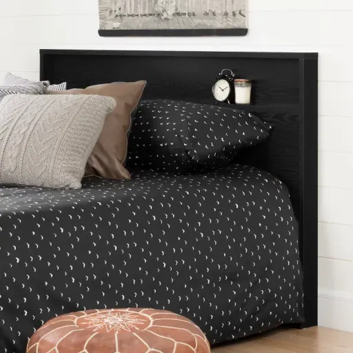 Now at RC Willey, the Holland black oak full-queen size headboard is a perfect solution for those wanting to add sleek, modern style with a touch of rustic vibe to their bedroom spaces. Its simple silhouette is both practical and stylish and features a bold and timeless black oak finish. A small, built-in storage shelf adds depth and convenience. Headboard only. Available for Online Purchase Only. Assembly required. This product ships direct from the manufacturer, so RC Willey Delivery is not available.