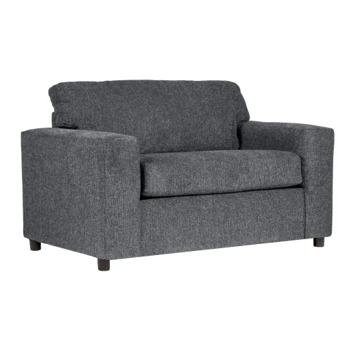 Discover the Kylo Cuddle Chair, a cozy haven designed for unparalleled relaxation. Crafted with easy-care ash gray upholstery, this transitional piece seamlessly blends into any space. Sink into its oversized frame, complete with square arms and plush pillow back cushions filled with high-density foam. s Supported by a sturdy solid wood frame with reinforcing corner blocks and sinuous springs, this Made in the USA chair offers both comfort and durability. Whether lounging with a book or enjoying a movie night, the Kylo Cuddle Chair promises to be your favorite spot for unwinding