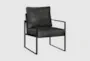 Enhance your living space with the Zachary Dark Grey 25" Faux Leather Accent Chair, a perfect blend of modern style and comfort. The dark grey faux leather upholstery offers a sophisticated look, while the exposed metal frame in a black finish adds a touch of industrial chic. This chair is designed to provide both aesthetic appeal and practical comfort.