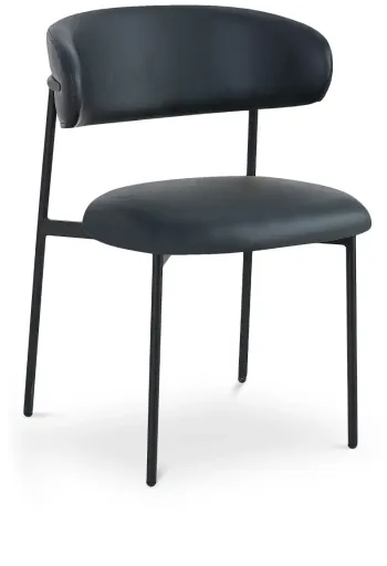 Take dining to a sophisticated new level with these Lupita black vegan leather dining chairs. Boasting a brushed black finish on the frame and legs for an elegant, refined feel, this pack of two vegan leather dining chairs features curved backs for total comfort all the way through the desert course. Padded cushions on the back and seat add to dining comfort. Pair these chairs with your favorite table for an upscale look in an instant. Available for Online Purchase Only. Ships Directly from the Manufacturer. RC Willey Delivery is Not Available. Assembly required.