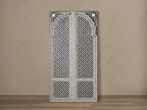 In collaboration with expert Indian artisans, our Arvali Inlay Door is inspired by traditional designs and authentic artistry passed down from generation to generation. Each handcrafted piece features a mosaic of bone inlay—each having been handpicked and hand-shaped before being carefully placed, one at a time, and sealed with resin. As our artisans are non-violent and strict vegetarians, our bone is humanely sourced from naturally deceased water buffalo that roam the streets and countryside of India.