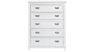 Add stylish and efficient storage to your bedroom with this Madrona Chest. Crafted from wood and engineered wood with a sleek navy blue finish, this chest features five dovetail drawers with smooth ball-bearing glides for easy access to your clothing and belongings. Polished nickel-tone flush ring pulls add a touch of sophistication, and with no assembly required, this chest is ready to enhance your bedroom décor right out of the box.